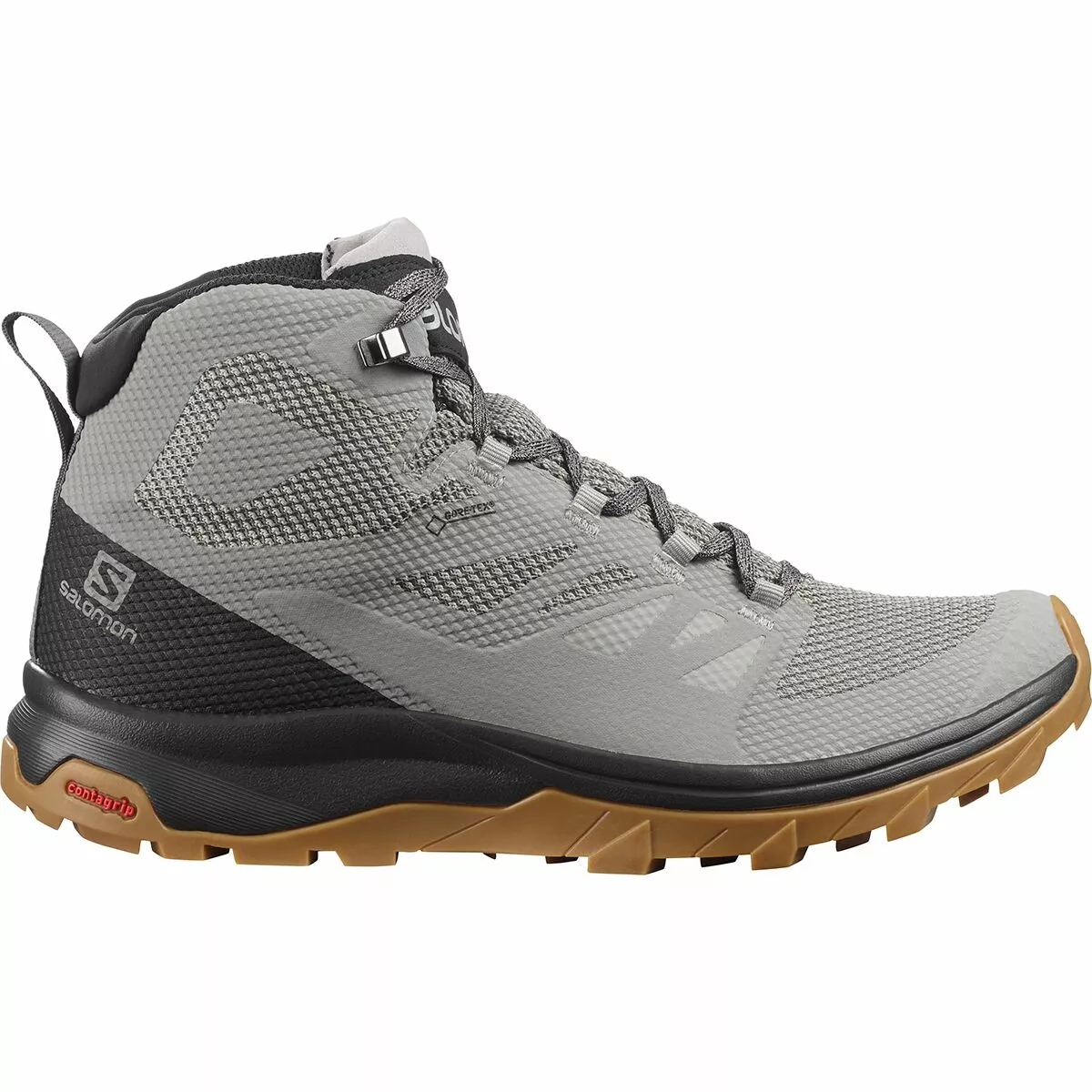 With the lightweight design and comfort of a running shoe mixed with the support and performance of a hiking boot, the Salomon Outline Mid GTX Hiking Boot gives us the best of both worlds so we can make the most of our time on the trail. It’s flexible, slim, and close in weight to a running shoe, but gives mid-rise support and a slew of other trail features. A GORE-TEX membrane keeps our feet dry for rainy days and river crossings, a protective toe cap keeps our forefoot protected from unexpected roots and rocks, while a Contagrip outsole with 5mm lugs gives us dependable traction for steep slopes.